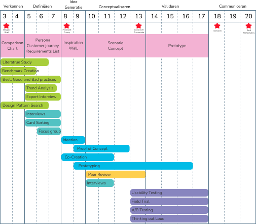 Ik zal een lijst met al mijn taken/opdrachten/to-do’s bijhouden in ClickUp en daar start/eind datum’s aan geven. Aan de hand van deze datum’s wordt voor mij elke week een sprint gemaakt met alle relevante taken. Aan het einde van de week zal ik de sprint voor de volgende week bekijken, taken toevoegen/weghalen en voorbereiden.