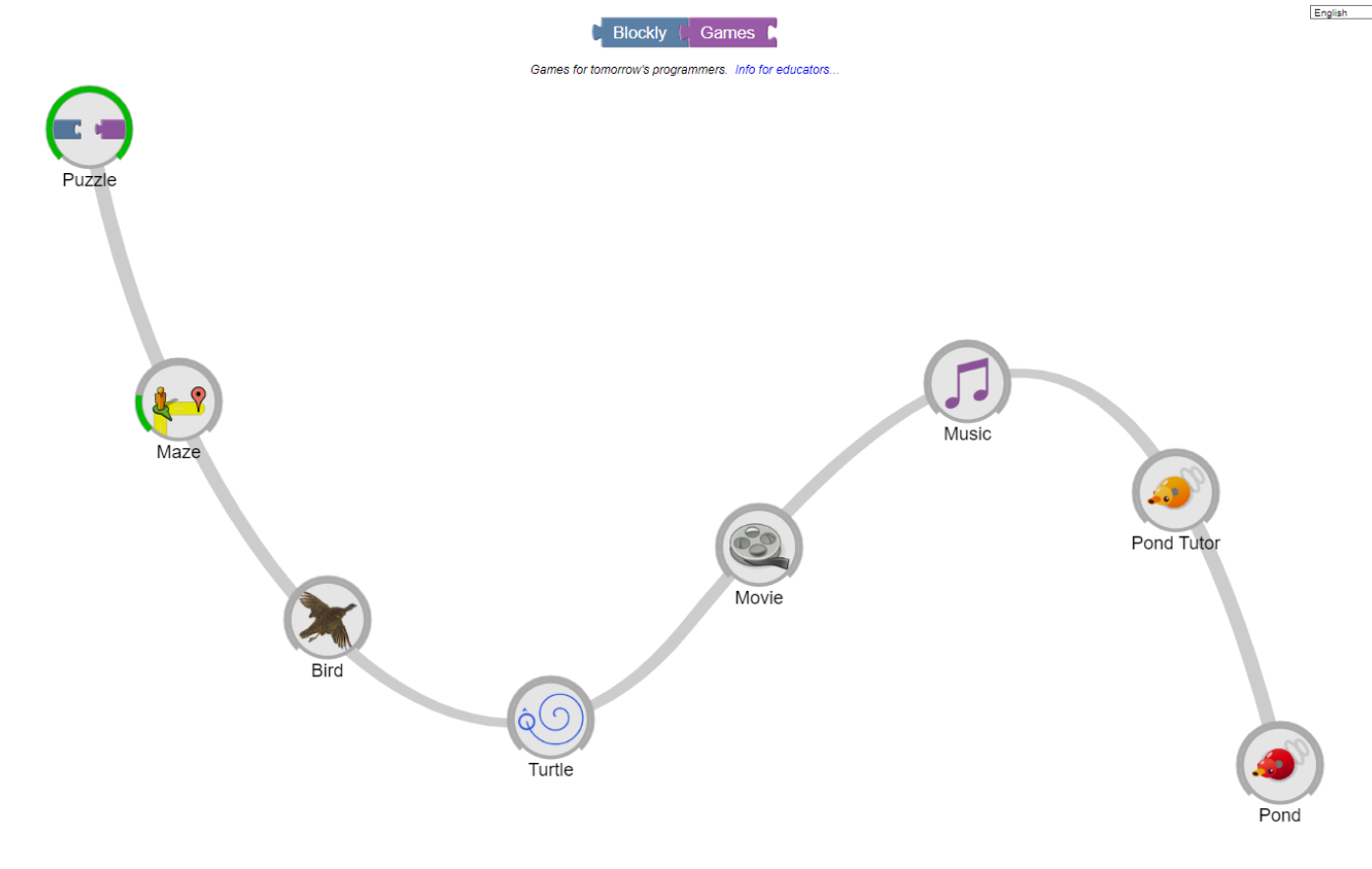 Blockly.games is ook een simpeler platform dan bijvoorbeeld Scratch of Code.org. In Blockly doorloop je een vast pat dat verschillende programeer concepten introduceert.