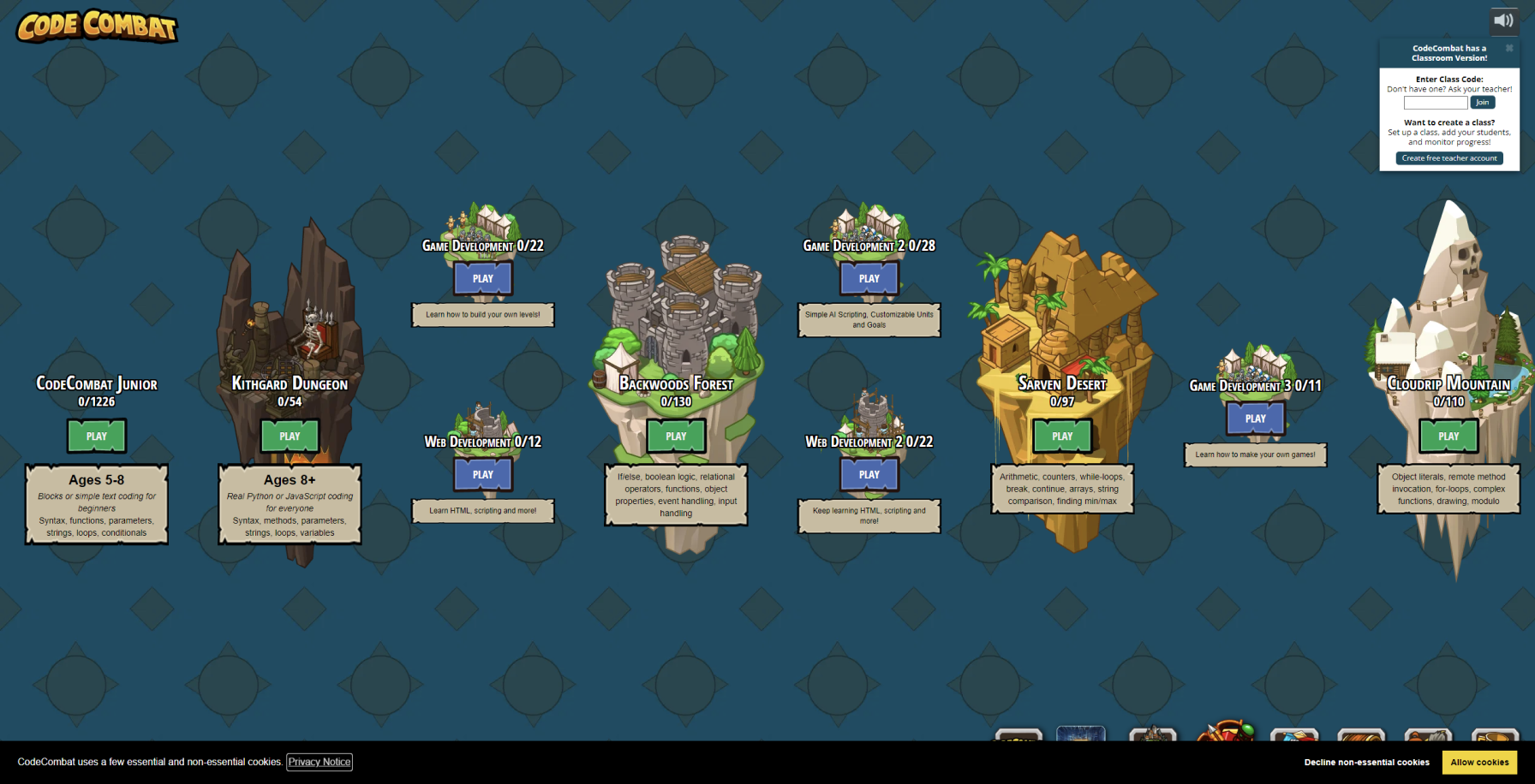 Code Combat is een uitgebreid platform dat kinderen leert coderen aan de hand van een RPG (Role Playing Game). Er wordt onderscheid gemaakt met leeftijden van 5 tot 8 en 8+. De leeftijd 5 tot 8 maakt gebruik van blokken en focust op coderen voor beginners terwijl de 8+ versie werkt met Javascript of Python in de form van functies.