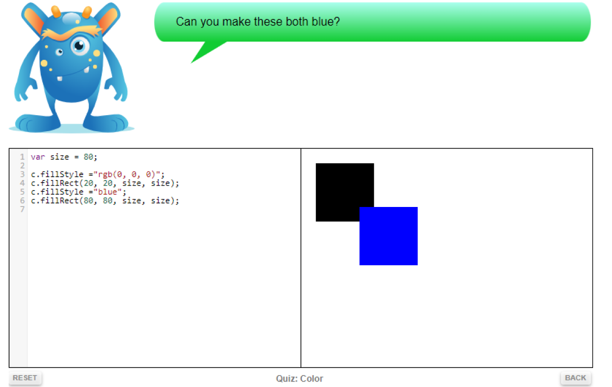De lessen bestaan uit een kleine opdracht die gedaan moet worden. Wanneer het kind denkt dat deze oplossing goed is kan er onderaan op ‘Finish’ worden geklikt. De opdracht wordt nagekeken en het kind mag, als de opdracht goed is, naar het volgende level. Als de opdracht niet goed is gemaakt komt er een pop-up waarin wordt aangegeven dat dit level nog niet afgerond is.