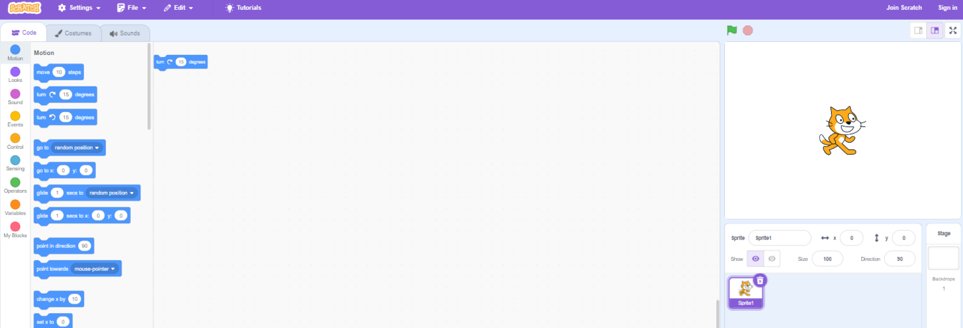 Scratch is een platform dat geschikt is voor kinderen van 6 tot 17 jaar oud. In plaats van daadwerkelijk code te typen, kun je codeblokken slepen en neerzetten om zo verhalen of spellen te programmeren. Scratch is meer een platform waarin je leert door te doen. In tegenstelling tot Code.org bestaan er bij Scratch geen lessen. Kinderen zijn vrij om hun eigen ideeën te maken aan de hand van de bestaande codeblokken.