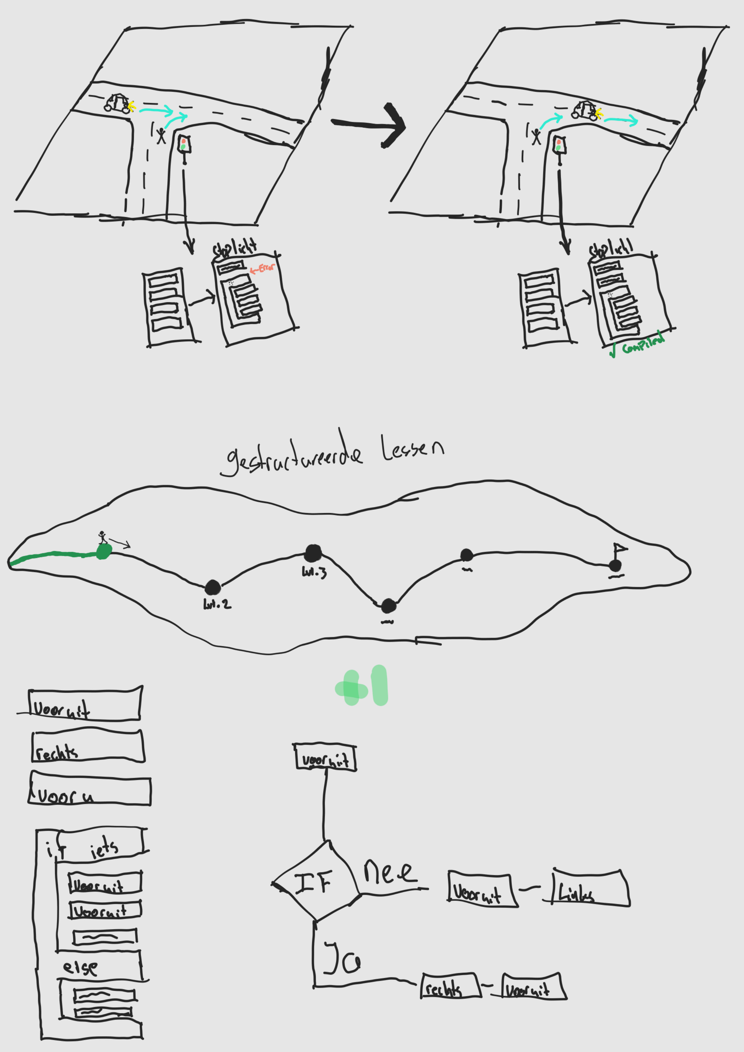 Tijdens mijn ontwerpfase ben ik ook bezig geweest met het schetsen van ideeën. Deze schetsen zijn erg Lo-Fi omdat dit schetsen waren die zijn gemaakt om een beeld te krijgen bij een idee uit een idee generatie sessie. Ik heb voor verder uitgewerkte ideeën of belangrijkere beslissingen meer Hi-Fi schetsen gemaakt.
